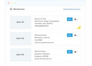 Zoho Inventory is one such solution, that offers advanced warehouse management capabilities. It allows businesses to manage multiple warehouses, check up on their inventory from any location, and track and manage orders across their entire network, all through the cloud.